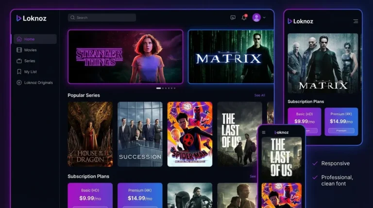L’adresse officielle de Loknoz reste accessible via loknoz.com et loknoz.fr. Le site fonctionne comme un agrégateur de contenu vidéo qui référence les productions disponibles sur les principales plateformes de streaming légales. Vous y trouverez des liens vers Netflix, Disney+, Amazon Prime Video, Hulu et MUBI, avec indication précise de la plateforme hébergeant chaque film ou série.